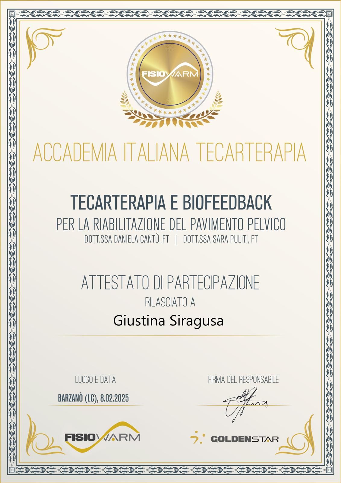 Sono Giustina Siragusa, ostetrica ed esperta terapista specializzata nella riabilitazione del pavimento pelvico. Mi prendo cura della salute intima delle donne in ogni fase della vita: dall’adolescenza alla gravidanza, dal post-parto all’età adulta, fino alla menopausa.