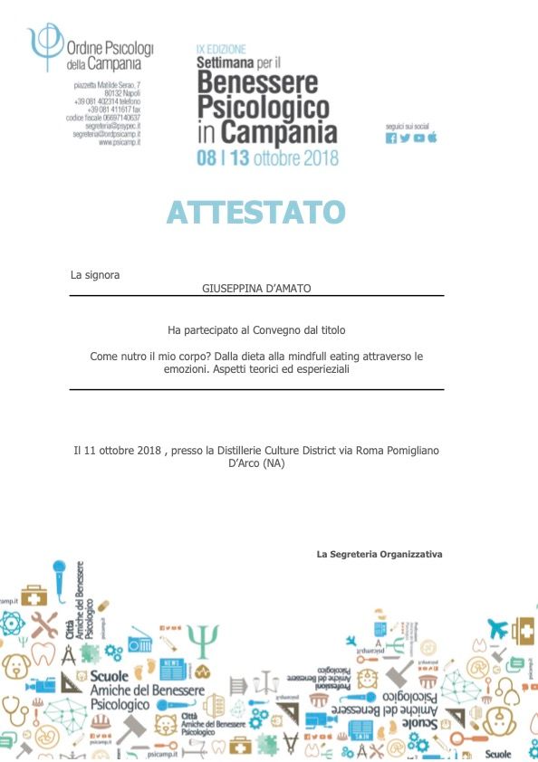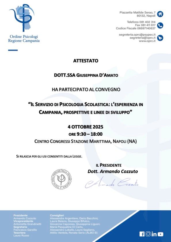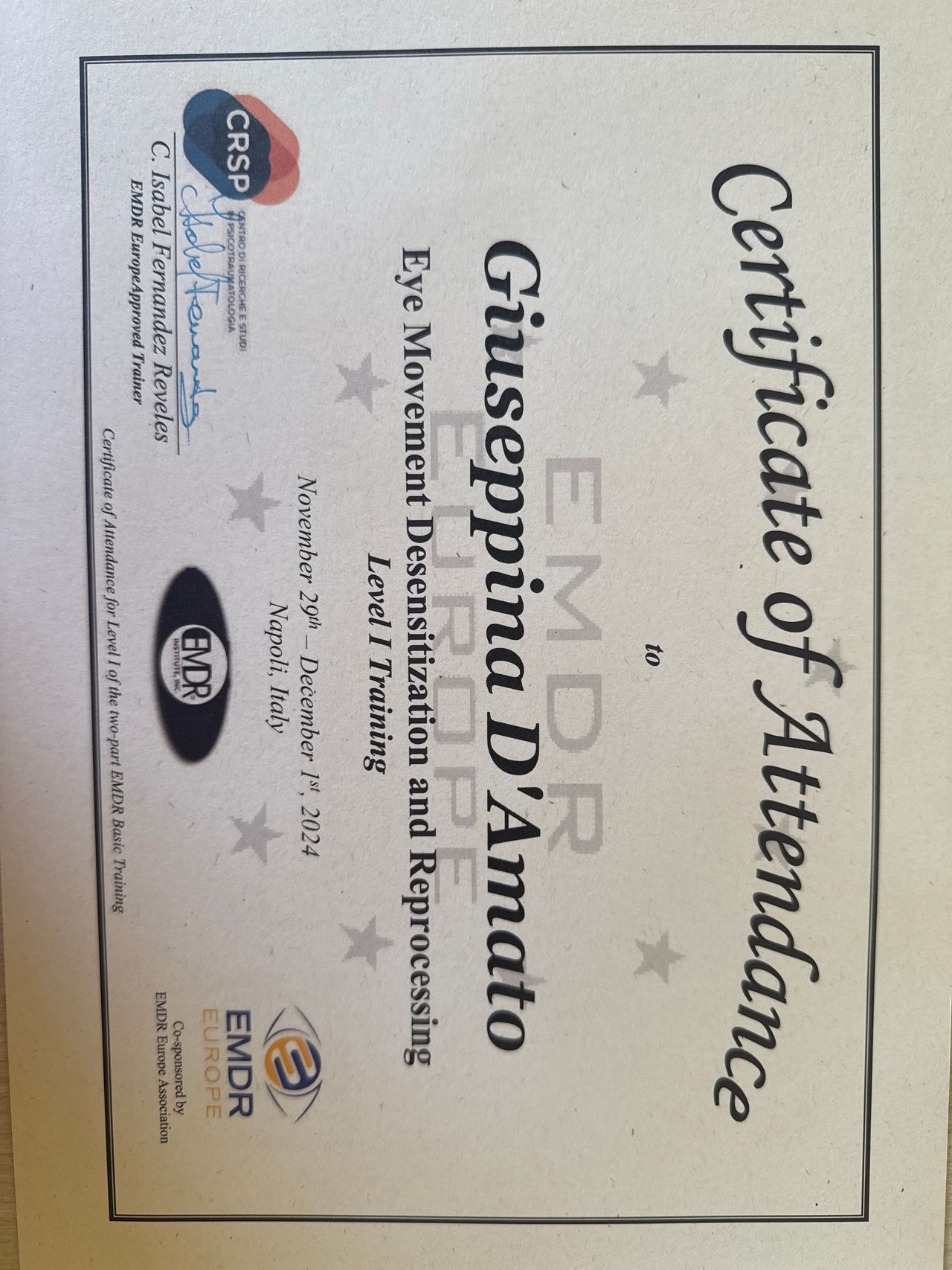 Ho avuto il piacere di intraprendere un percorso con la Dott.ssa Giusy D’Amato e ne sono rimasta molto soddisfatta. La sua capacità di ascolto, la professionalità e l’empatia hanno reso ogni incontro uno spazio sicuro e costruttivo. Grazie al suo supporto ho acquisito nuove consapevolezze e strumenti concreti per affrontare le difficoltà quotidiane. Consiglio vivamente la sua consulenza a chi desidera intraprendere un percorso di crescita personale e benessere psicologico.