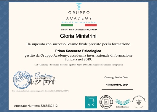 Attualmente, sono iscritta alla Scuola di Psicoterapia Sistemico Relazionale Mara Selvini Palazzoli a Brescia.