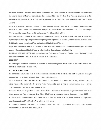 Si è specializzato in Foniatria presso l'Università degli Studi di Ferrara il 10/7/1985 con voti 68/70 discutendo la