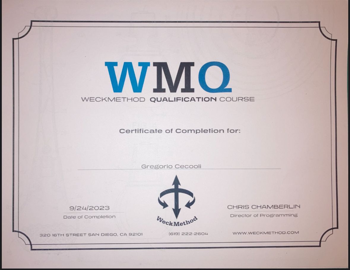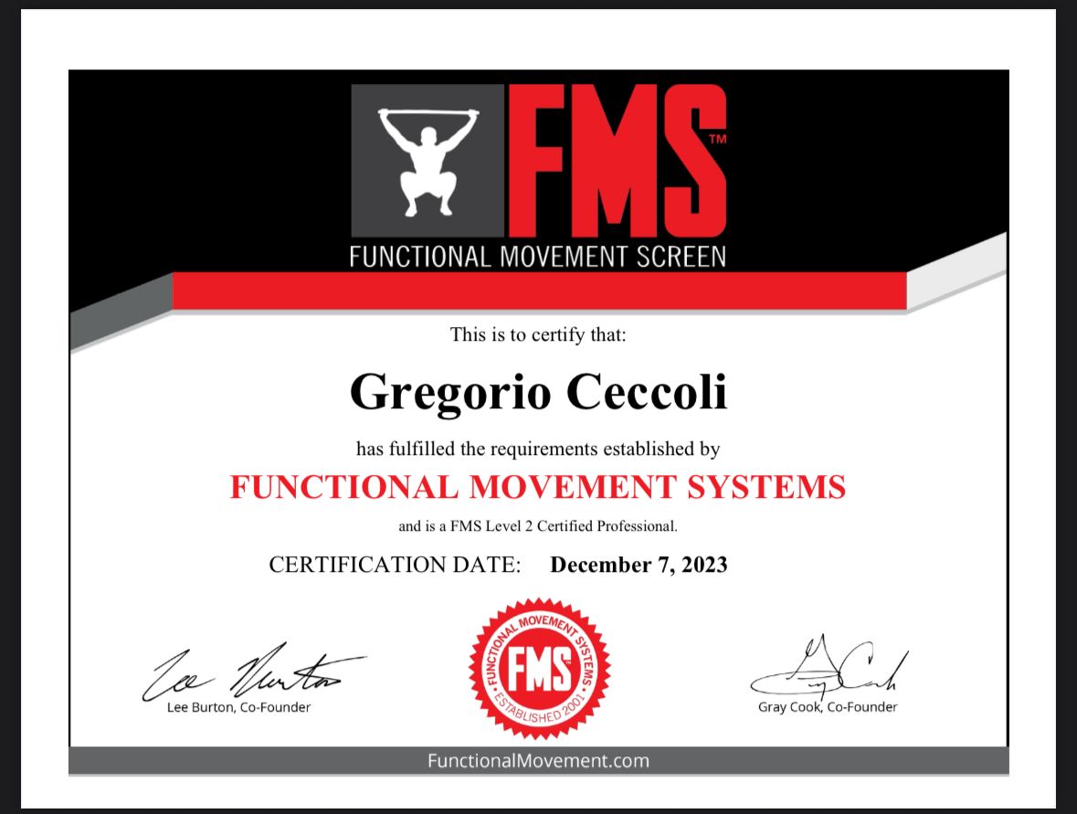 •Barefoot Training Specialist •Weck Method •Functional Movement Screening (FMS)