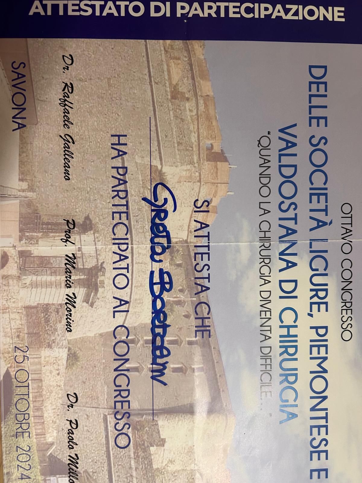Tra il 2018 ed il 2019 ho lavorato presso il Pronto Soccorso dell'Azienda ULSS 7 pedemontana (Bassano del Grappa). Nel 2023 ho partecipato alla Scuola nazionale SIC - ISHAWS di Chirurgia delle Ernie e della Parete Addominale.