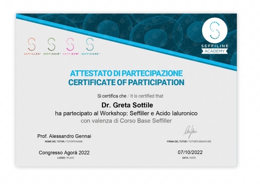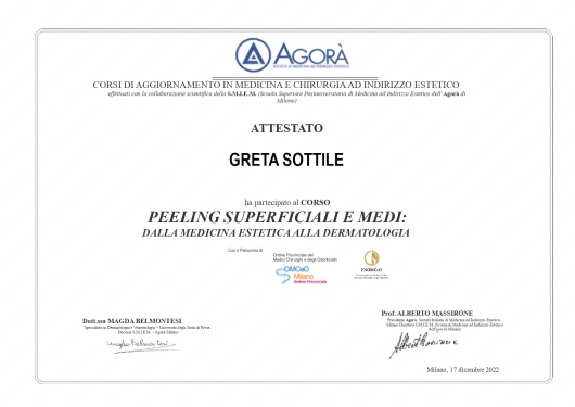 Sono in formazione continua tramite congressi e corsi di aggiornamento per avere sempre a disposizione i prodotti e gli strumenti più innovativi ed efficaci nell'ambito della Medicina Estetica.
