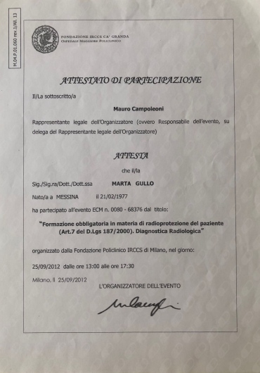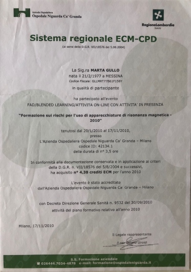Il mio percorso formativo e lavorativo mi ha portato al San Paolo, allo IEO (Istituto Oncologico Europeo), all'Istituto Clinico Humanitas (Rozzano), al Niguarda, al Policlinico/Mangiagalli di Milano ed all' Azienda Bergamo est (Alzano e Casazza), consentendomi una ricca esperienza anche in altri ambiti (patologia d'urgenze, diagnostica ecografica, mammografica, TC, RMN, radiologia convenzionale e la diagnosi preventiva).
