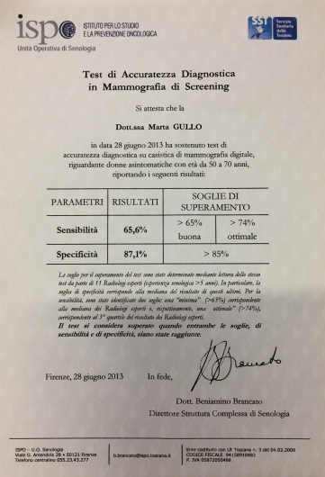 Ho effettuato un’ecografia al seno con la Dott.ssa Marta Gullo e desidero esprimere la mia piena soddisfazione per la professionalità e la competenza dimostrate. La dottoressa si è mostrata attenta, disponibile e capace di mettere il paziente a proprio agio sin dal primo momento.