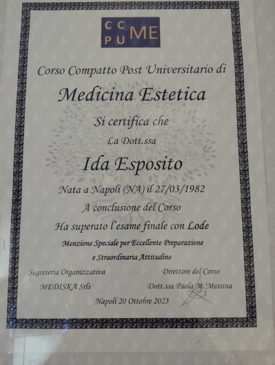 La Dott.ssa Esposito è membro SIES Società Italiana di medicina e chirurgia estetica e AFI