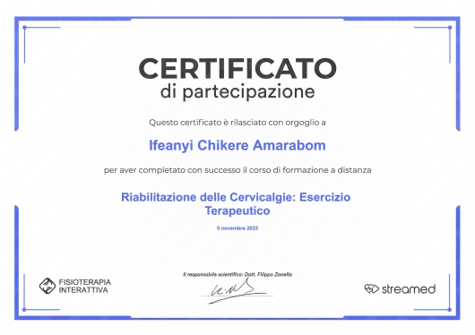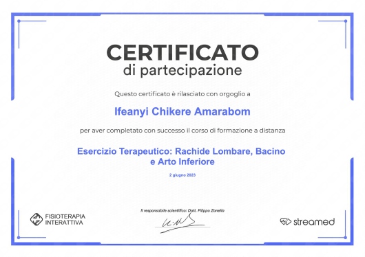 Ho acquisito ottime capacità di relazione con il paziente al fine di individuare il corretto piano terapeutico in accordo con il paziente, condividendo gli obiettivi riabilitativi e la prognosi.