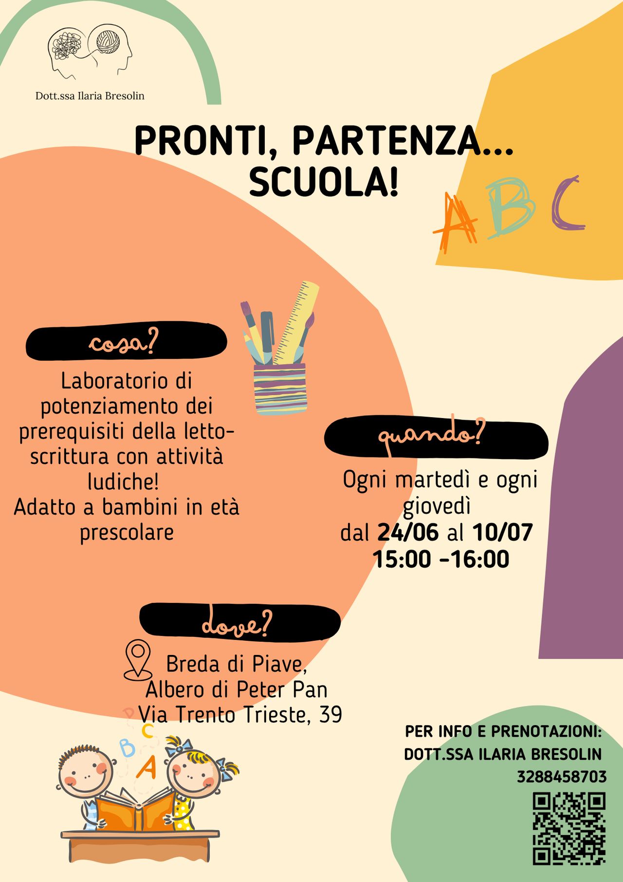 Il laboratorio di potenziamento dei prerequisiti degli apprendimenti è pensato per essere d'aiuto a tutti quei bambini che a settembre inizieranno la prima elementare, in modo da rendere più sereno e giocoso questo grosso cambiamento.