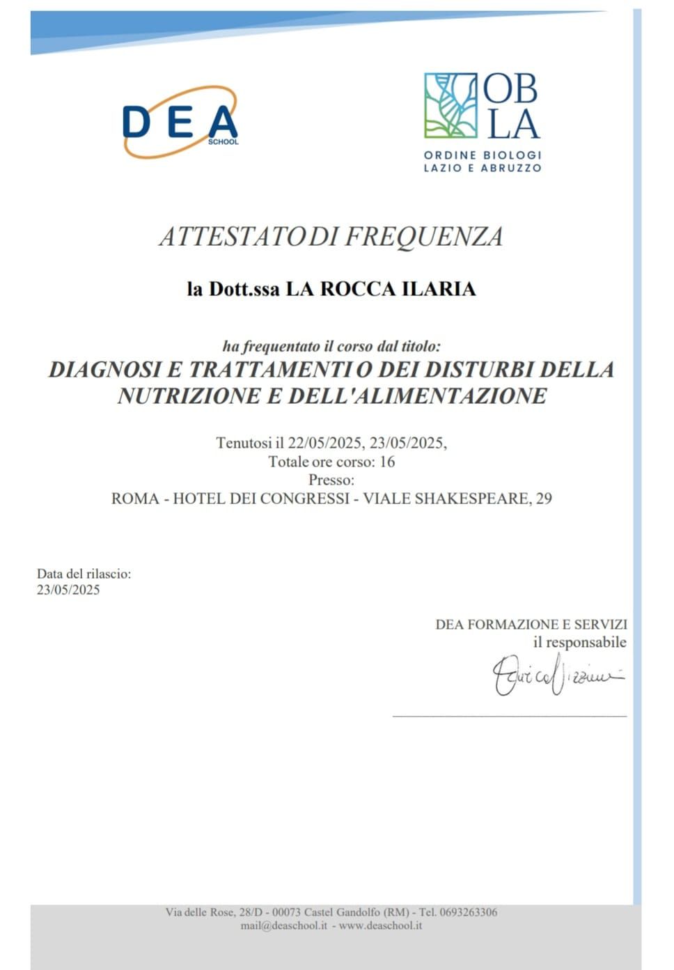 • Dott.ssa Ilaria La Rocca Biologa Nutrizionista • prima visita nutrizionale •