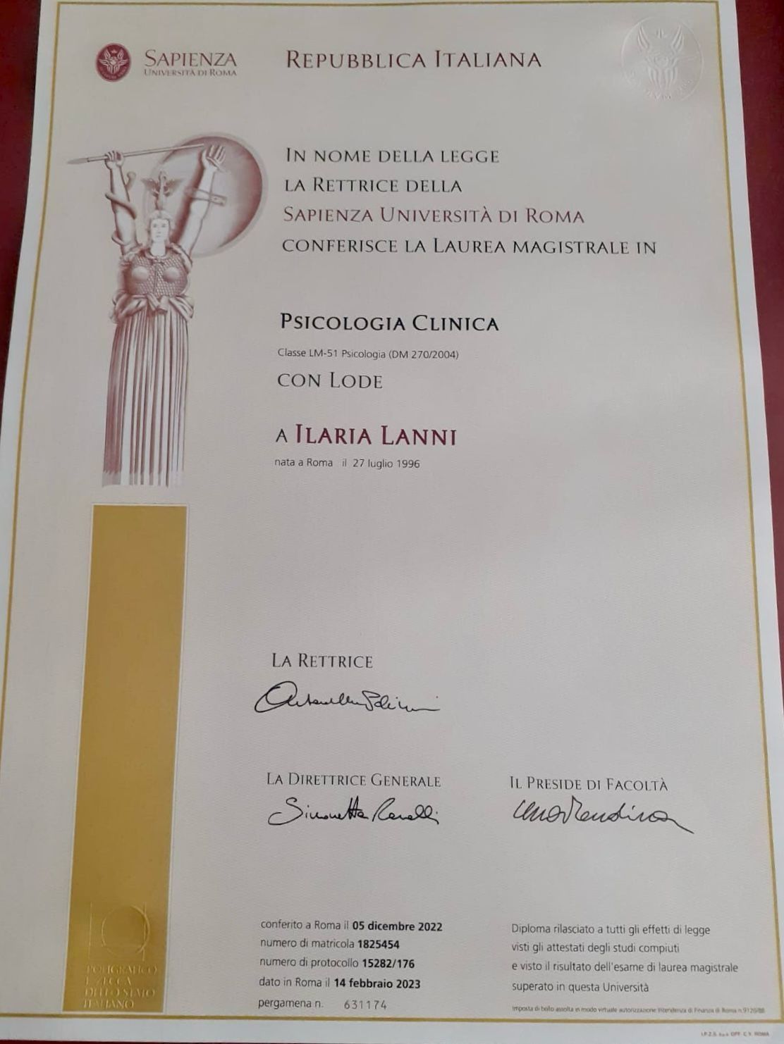 Sono la dott.ssa Ilaria Lanni, psicologa clinica e specializzanda presso la scuola di Psicoterapia Training School ad approccio cognitivo comportamentale integrato, con una formazione dedicata ad acquisire un modello della persona che connetta le continuità-discontinuità delle diverse fasi di vita.