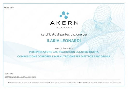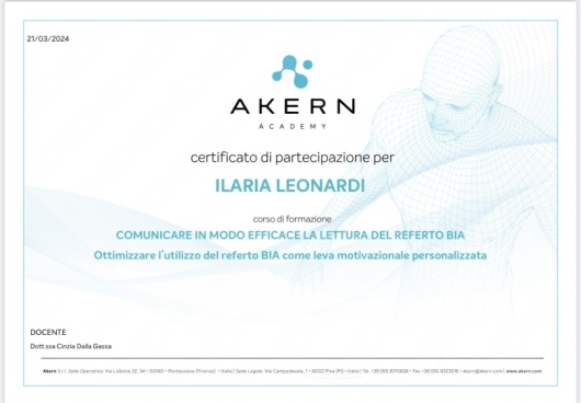 - Analisi bioimpendenziometrica (valutazione della composizione corporea, massa magra e massa grassa, liquidi corporei)