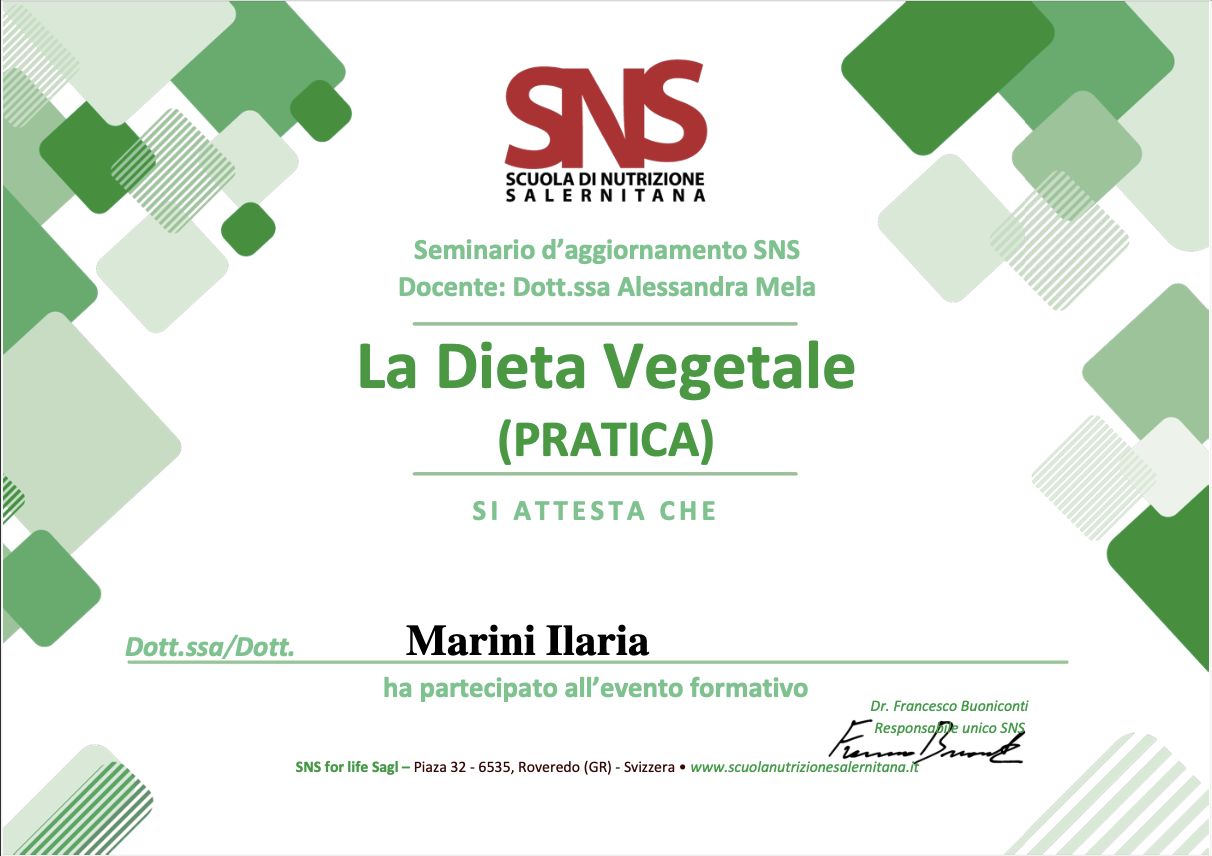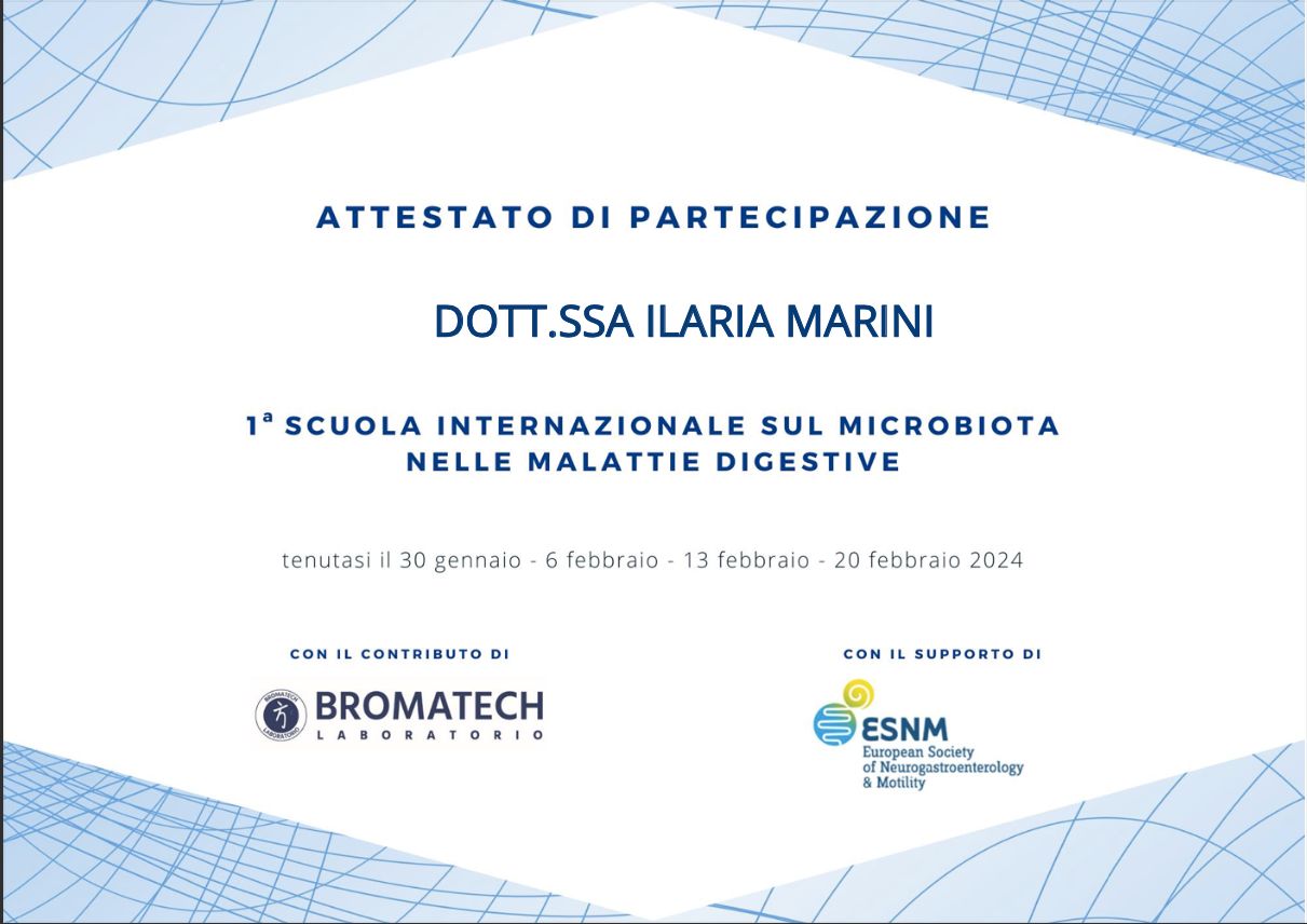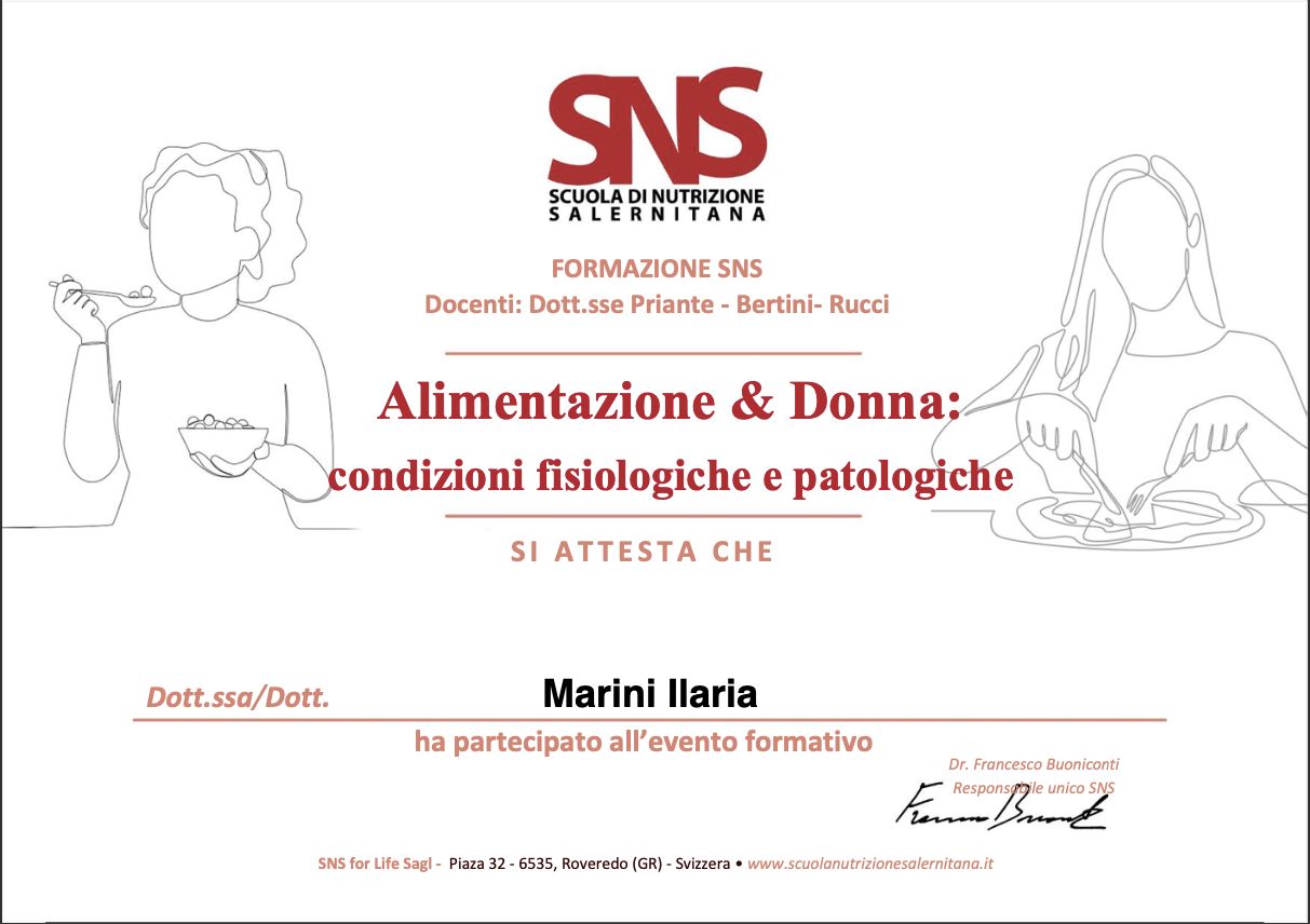 Nel 2024 ho intrapreso un Master di II Livello in Nutrizione Umana presso l’Università degli Studi di Pavia, che ho concluso con una tesi sull'efficacia della terapia nutrizionale e della supplementazione con psicobiotici nel trattamento di depressione e ansia, a supporto delle terapie tradizionali.