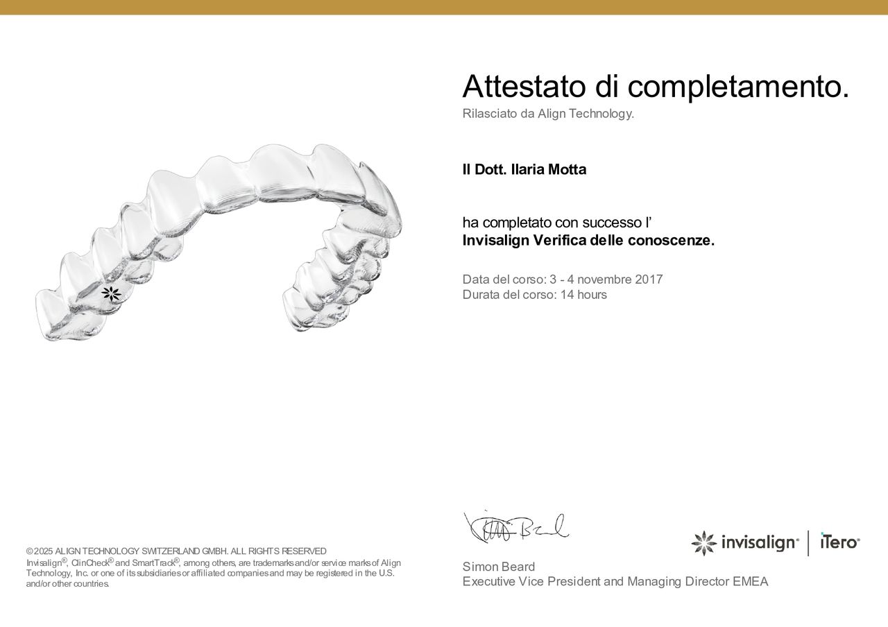 Sono la Dott.ssa Ilaria Motta, specialista in Ortognatodonzia, e da oltre 15 anni mi occupo di trattamenti ortodontici per adulti e ragazzi, con percorsi personalizzati pensati per unire estetica, funzionalità e benessere del sorriso.