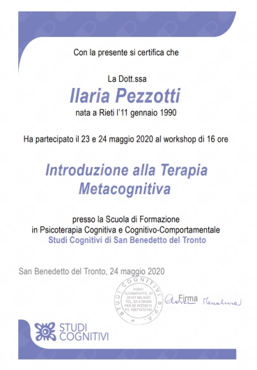 • Dottoressa Ilaria Pezzotti - Psicologa , Psicoterapeuta cognitivo comportamentale, Tutor DSA, Coach di PNLU • colloquio individuale •