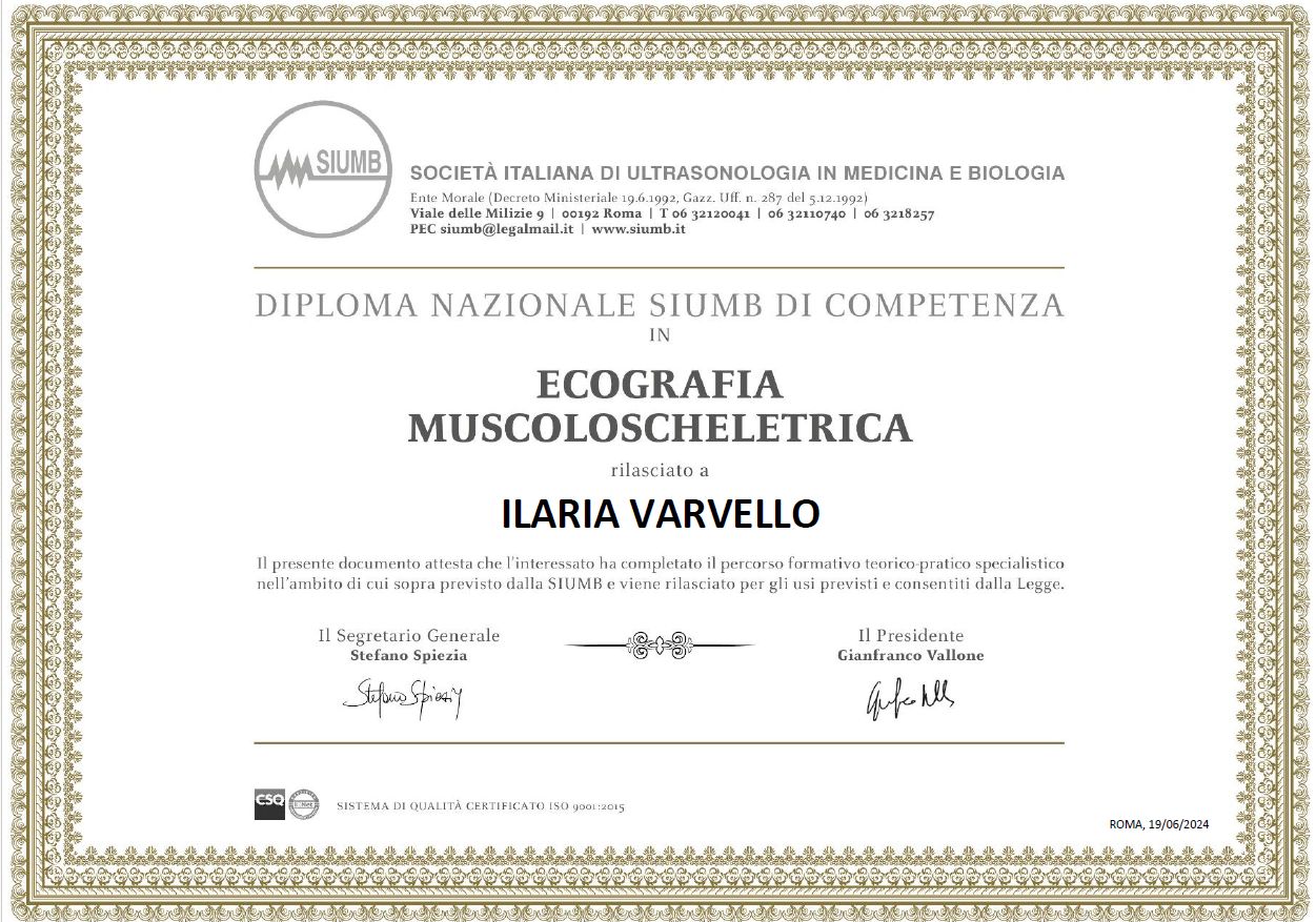 Successivamente, ho conseguito il diploma in agopuntura e tecniche complementari presso il Centro Studi Terapie Naturali e Fisiche di Torino e il diploma in ecografia muscolo-scheletrica presso la scuola della Società Italiana di Ultrasonologia in Medicina e Biologia di Bologna.