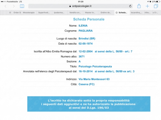 Tengo però a precisare, nel rispetto delle sue parole e senza entrare nei dettagli personali, che il percorso terapeutico è stato accolto da parte mia con costante professionalità, disponibilità e rispetto, nonostante lei stesso, fin dall’inizio, mi abbia riferito un forte scetticismo nei confronti della figura del terapeuta, maturato in seguito a precedenti esperienze da lei definite fallimentari.