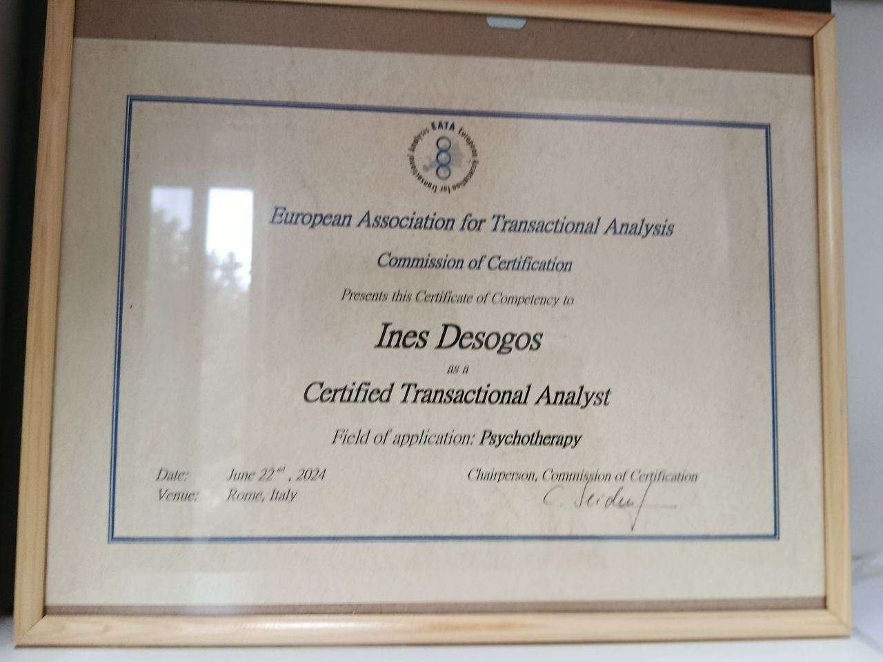 Sono la Dott.ssa Ines Desogos, Psicologa Psicoterapeuta e CTA (Analista Transazionale Certificata), libera professionista dal 2018.