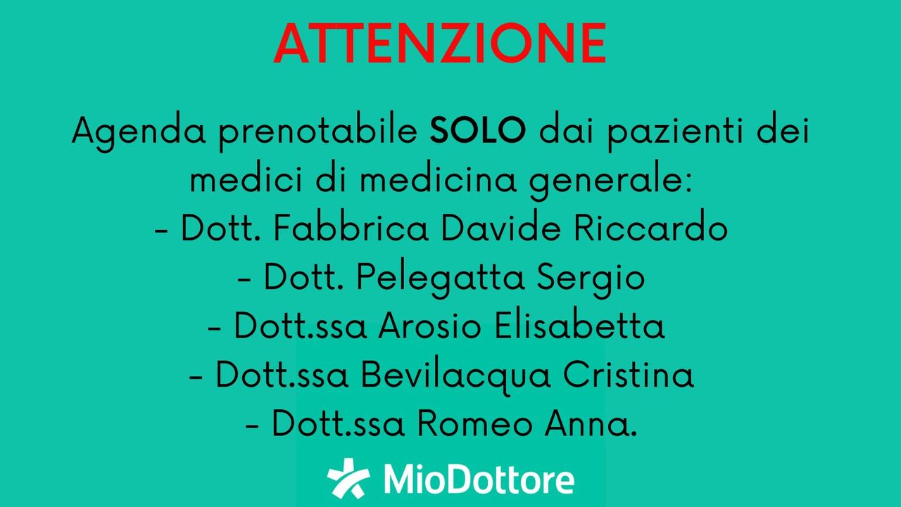 ATTENZIONE! Agenda prenotabile SOLO dai pazienti dei medici di medicina generale: