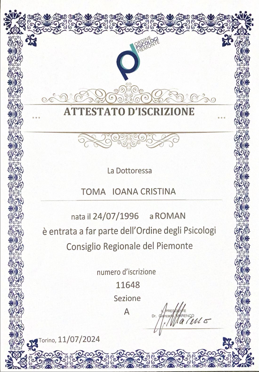 Dott.ssa Ioana Cristina Toma