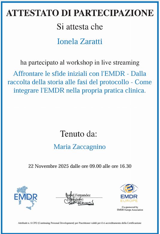 • Dott.ssa Ionela Zaratti • EMDR (Psicoterapia dei disturbi post-traumatici) •