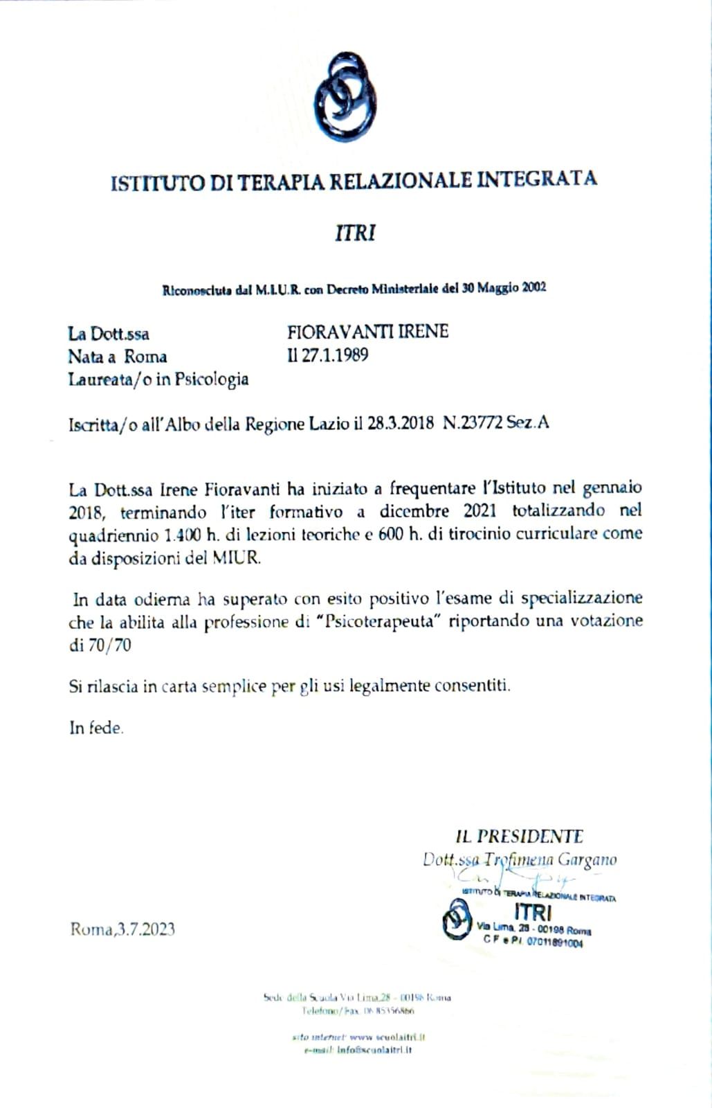 • Studio di Psicoterapia-Dott.ssa Irene Fioravanti • psicoterapia individuale •