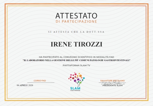 La dottoressa Tirozzi è una professionista non solo molto preparata, ma anche sempre aggiornata e al passo con la ricerca. Riesce ad essere professionale ma allo stesso tempo rendere la visita piacevole grazie alla sua cordialità e gentilezza. È anche molto disponibile per quanto riguarda eventuali dubbi sul piano alimentare.