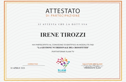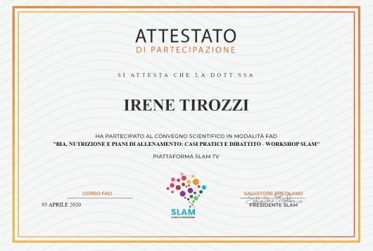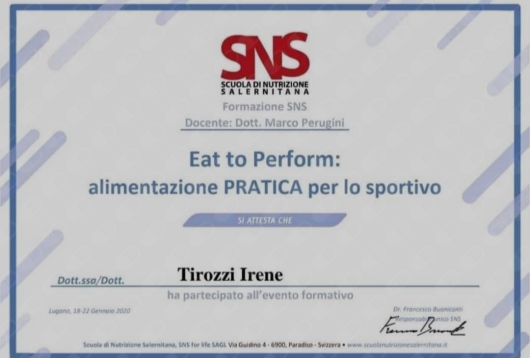 Ho conseguito la Laurea Magistrale in Scienze dell'Alimentazione e della Nutrizione Umana, presso l'Università Campus bio-medico di Roma (UCBM) con il massimo dei voti. Contemporaneamente, sono stata tirocinante presso l'Istituto di Medicina e Scienza dello Sport (IMSS) del C.O.N.I., dove ho avuto la preziosa occasione di lavorare nel team di nutrizione dell'Istituto, occupandomi di valutare la composizione corporea e la nutrizione di atleti d'élite, olimpici e professionisti. Questa esperienza è stata una preziosa occasione per interfacciarmi con atleti di rilevanza nazionale ed internazionale. Il lavoro di tesi di natura sperimentale è stato sviluppato in questo periodo, in collaborazione con l'UCBM e l'IMSS; in seguito selezionato sia dall'European Sport Nutrition Society sia dalla commissione scientifica NUTRIMI.