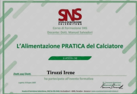 Sono stata docente presso la Scuola dello Sport (SDS) del C.O.N.I. dove ho tenuto lezioni di aggiornamento in nutrizione sportiva destinate a tecnici di diverse Federazioni Italiane.