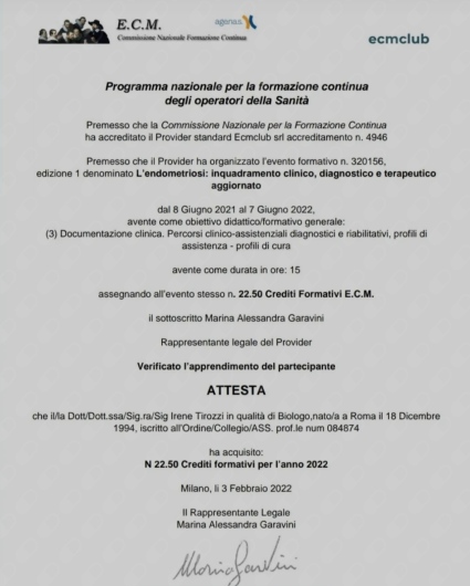 Sono costantemente in aggiornamento scientifico e il mio metodo di lavoro è totalmente evidence based.
