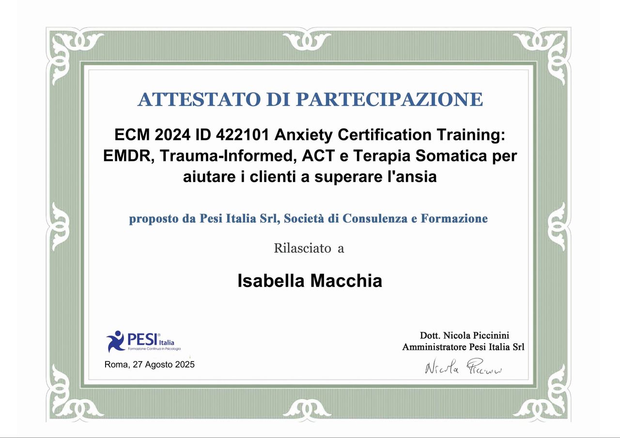 Mi sono laureata all'università di Chieti e dopo essermi iscritta all'albo degli psicologi ho iniziato da subito a praticare la mia professione sia online che in studio.