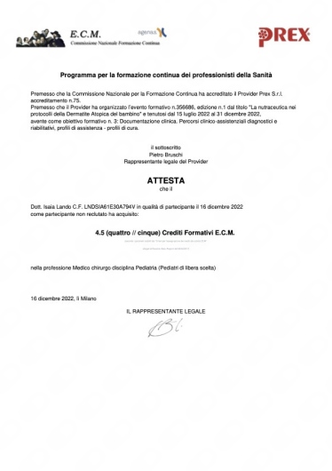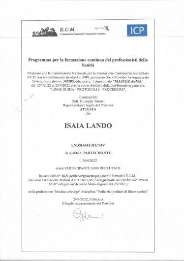 Studio Privato Dott. Isaia LANDO • prima visita pediatrica