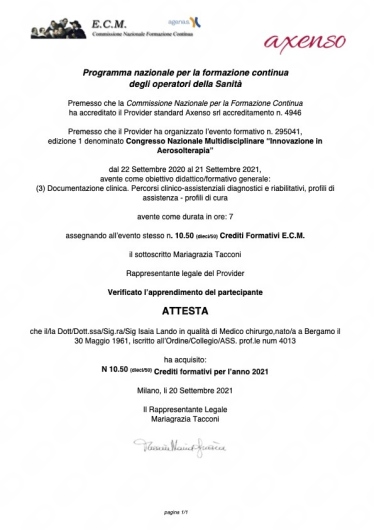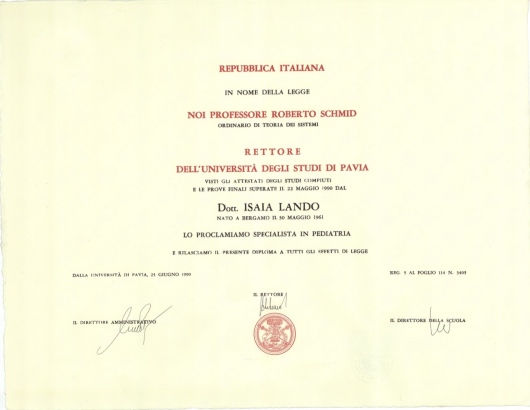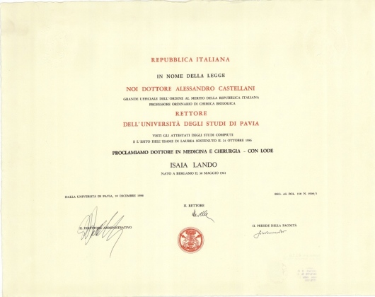 Laurea con 110 e lode in Medicina e Chirurgia presso l'Università degli Studi di Pavia nel 1986. Specializzazione in Pediatria presso l'Università degli Studi di Pavia nel 1990, a coronamento di un velocissimo e brillante iter accademico che lo vede specialista a soli 28 anni. Iscritto dal 1987 all'albo Provinciale dei Medici Chirurghi di BERGAMO, città dove esercita la sua professione. Le aree di specifica competenza del Dottor Lando sono: