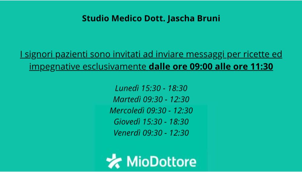 I signori pazienti sono invitati ad inviare messaggi per ricette ed impegnative esclusivamente dalle ore 09:00 alle ore 11:30