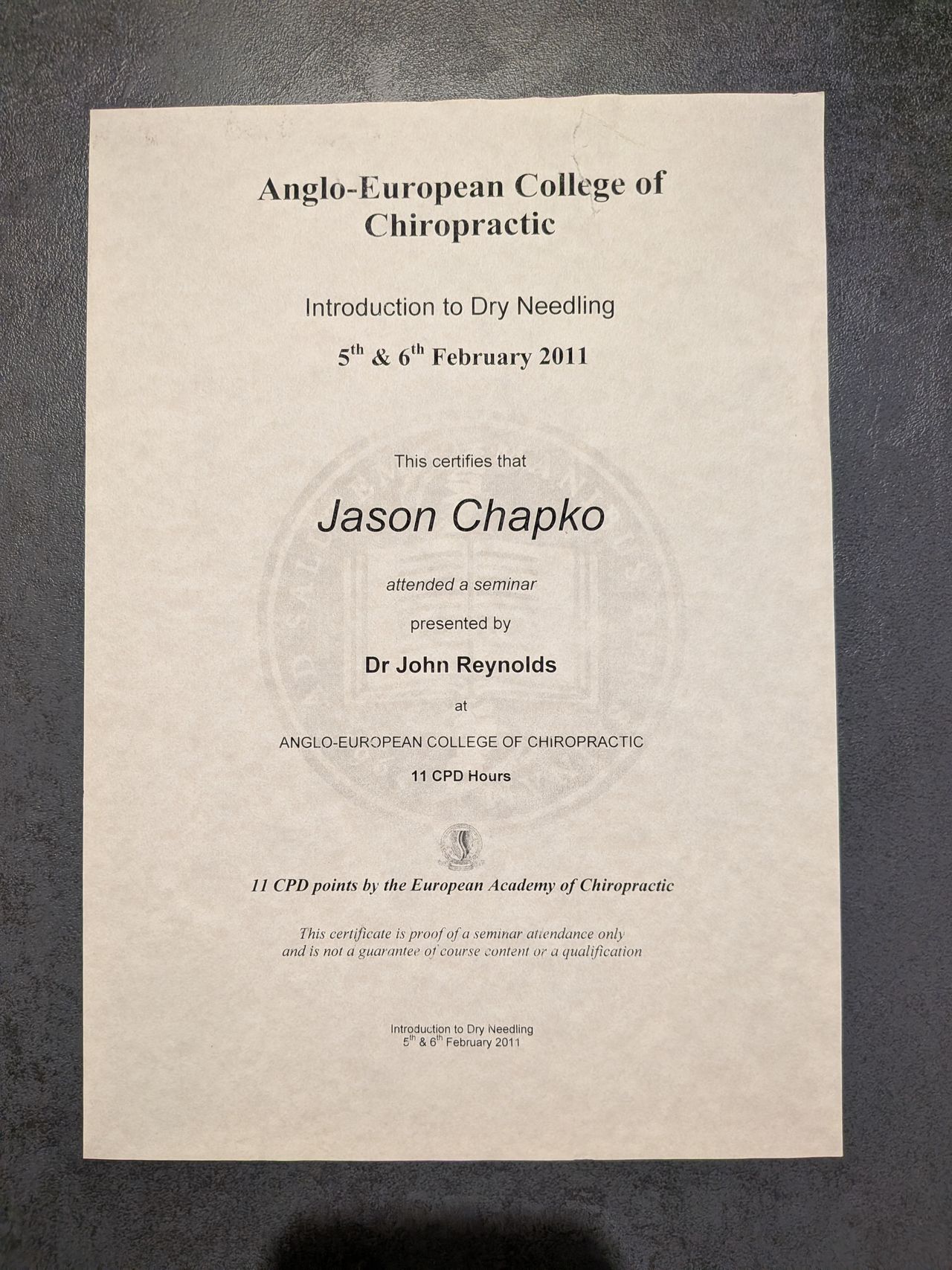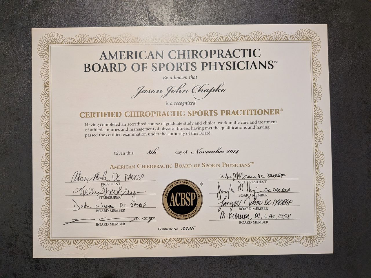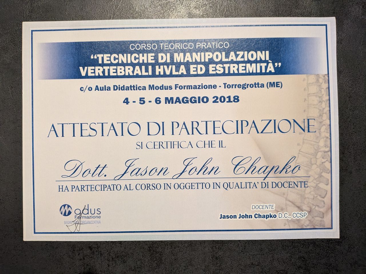 Nel corso degli anni si specializza in tecniche miofasciali, manipolazione delle estremità, kinesiology taping e si certifica come chiropratico dello sport presso il Northwestern Health Sciences University (Minneapolis, USA).