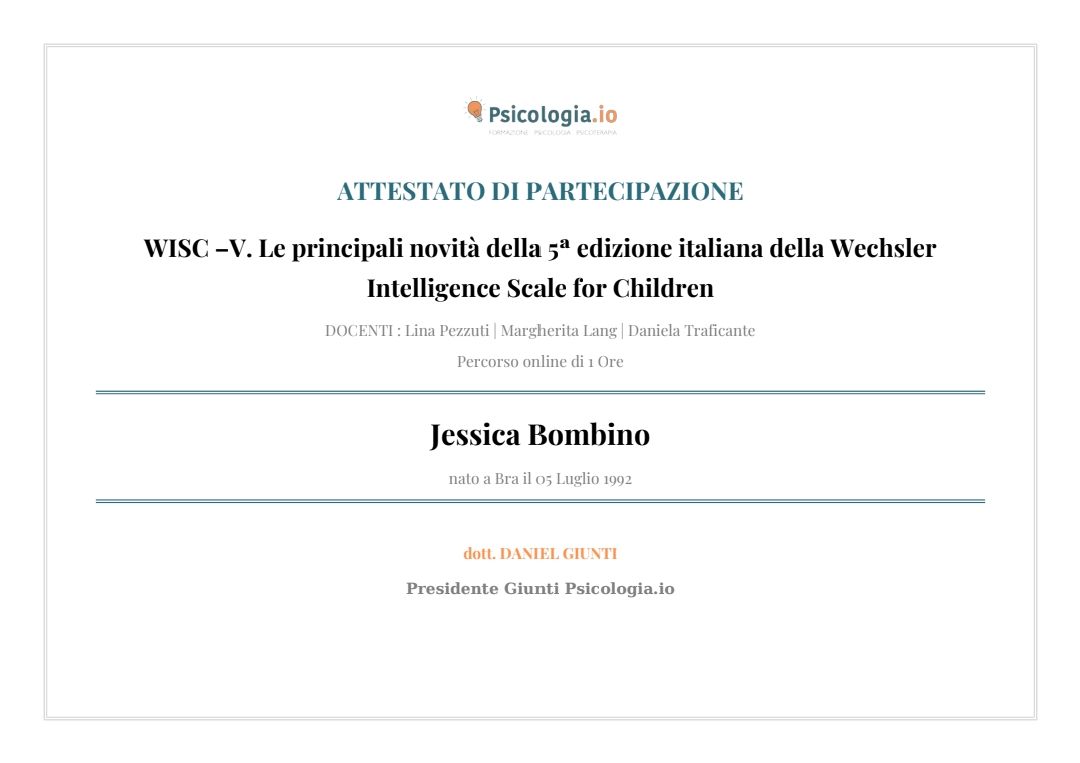 Cordiali Saluti Dott.ssa Jessica Bombino