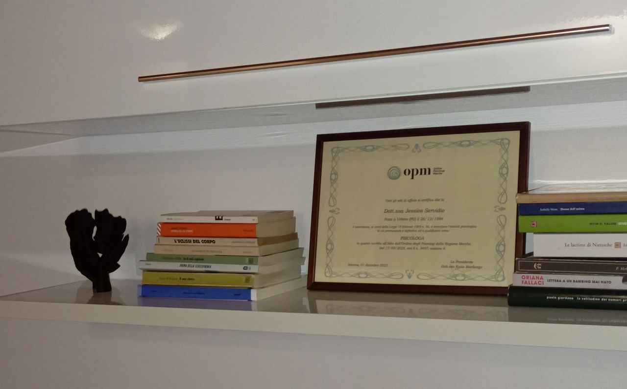 Ho conseguito la laurea magistrale in “Psicologia Clinica” presso l’Università degli Studi di Urbino Carlo Bo con una tesi sul trauma declinato sul soma: “Trauma incarnato: somatizzazioni, condotte narrative e simboli trauma-related”. In seguito ho svolto Servizio Civile presso la residenza sanitaria “Casa Moscati” (Ce.I.S. Pesaro), casa alloggio per persone sieropositive e/o con AIDS, confrontandomi con la tossicodipendenza e il tema del fine vita.
