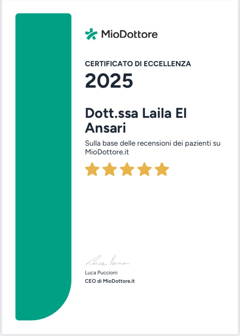 Mi sono rivolta alla Dr.ssa El Ansari per capire come perdere peso e avere un’alimentazione sana, le sue doti di competenza e professionalità spiccano e la visita è stata estremamente accurata e dettagliata.