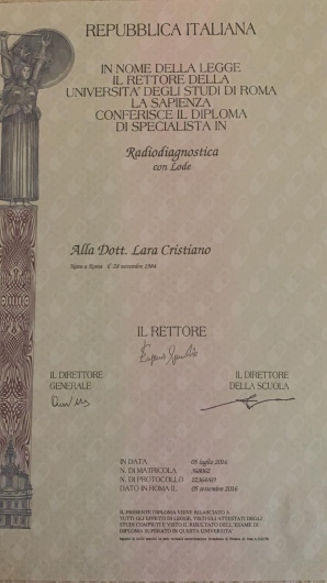 Ho effettuato un'ecografia con la dott.ssa Cristiano e posso ritenermi molto soddisfatta dell’incontro. Professionale, attenta e scrupolosa nell’effettuare l’esame e nello spiegare la problematica riscontrata. La consiglio senza dubbio.