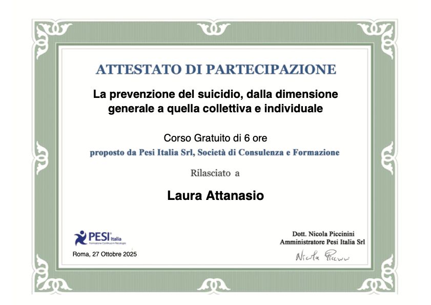 Abbiamo iniziato un percorso con la Dott.ssa Attanasio per alcune preoccupazioni legate a mia figlia e mi sono sentita fin da subito accolta e ascoltata come genitore. Oltre al lavoro svolto con mia figlia, ho apprezzato molto il supporto che ha dato a me. Mi ha aiutata a comprendere meglio la situazione e mi ha fornito strumenti concreti senza mai farmi sentire giudicata. Professionista empatica e competente, la consiglio sinceramente a chi cerca un sostegno serio e rassicurante.