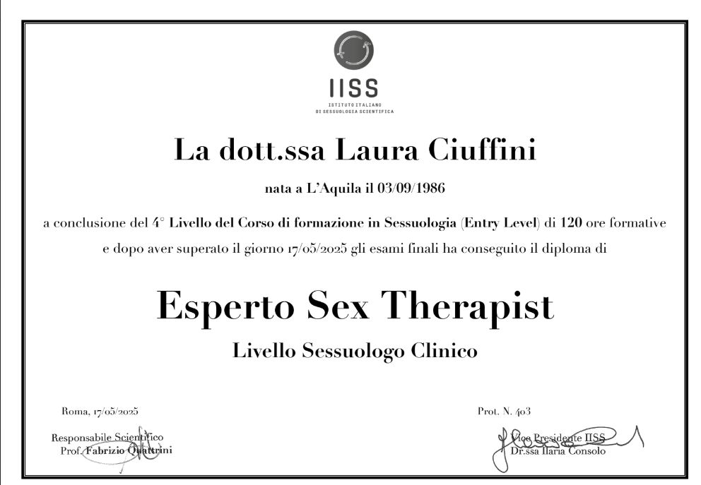Sono la dott.ssa Ciuffini Laura, psicoterapeuta e sessuologa.