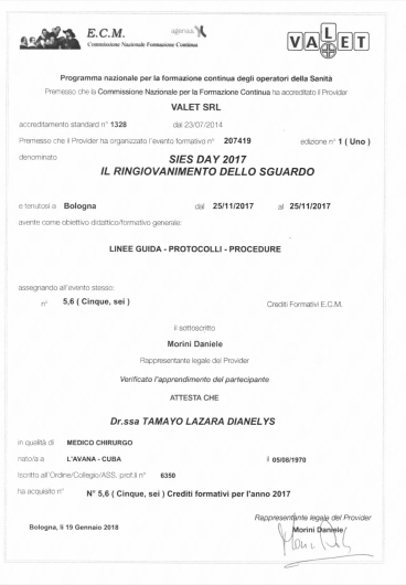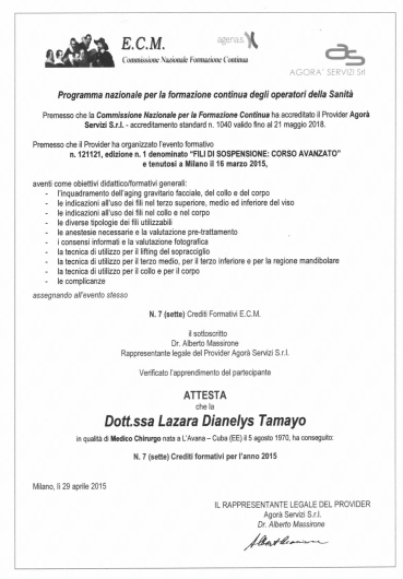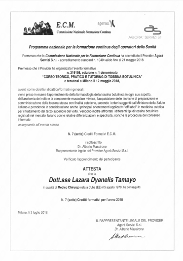 Cordialita Professionalità eSerieta sono le caratteristiche della Dottoressa Lazara Dianelys Tamayo. Primo appuntamento trattamento PRX molto positiva con risultato immediato