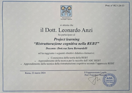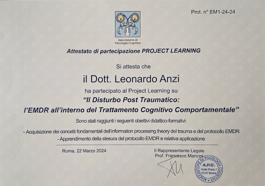 Sono diversi mesi che affronto i miei pensieri e prima di parlarne con uno specialista avevo difficoltà nel mettere a posto le idee e tutti i lati negativi che ne conseguono, da quando ho messo piede nello studio ho trovato la forza di parlare e andare avanti, e dopo un bel percorso posso dire che i risultati si iniziano a vedere, ringrazio me stesso e il dottore Leonardo che sa come rialzarti e rimetterti in piedi, sa gestire le tue emozioni, negative e positive, ha sempre consigli giusti su come procedere ed essere forti con se stessi, cerca sempre di farti ragionare non lascia niente al caso, arriva sempre a toccarti l’anima con le sue domande, veramente professionale.