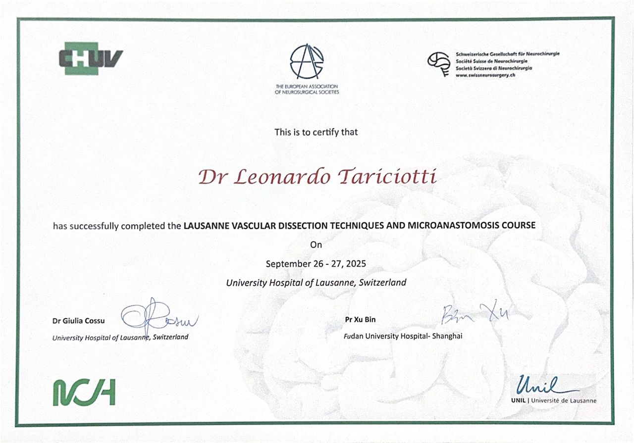 Mi sono laureato in Medicina e Chirurgia con lode presso l’Università di Roma e ho conseguito la specializzazione in Neurochirurgia con lode presso l’Università degli Studi di Milano.