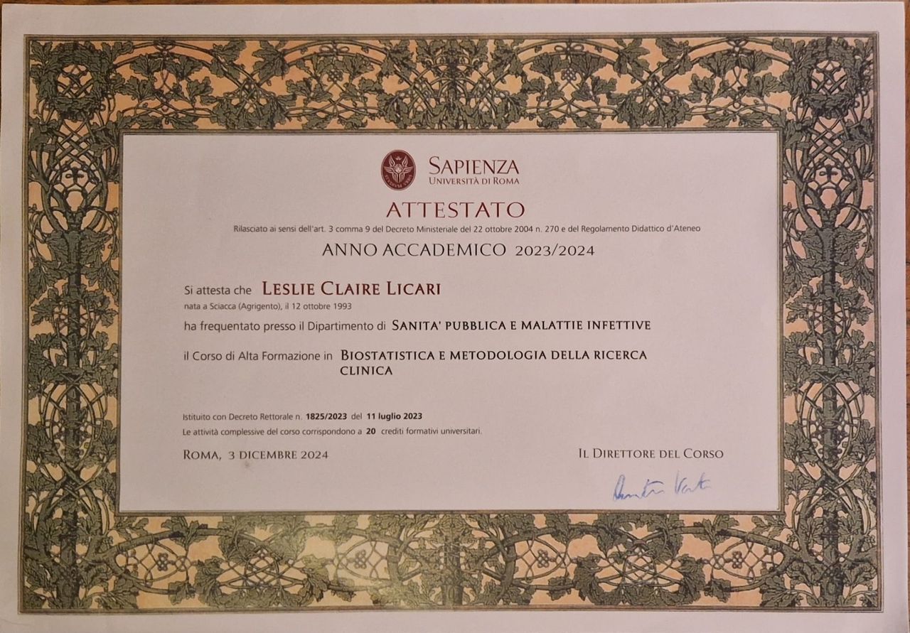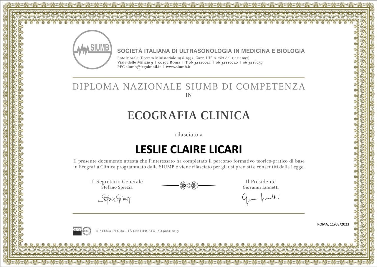 Ho inoltre conseguito il Diploma Nazionale di Ecografia Clinica SIUMB, utile per un inquadramento diagnostico più completo e integrato durante il percorso di cura.