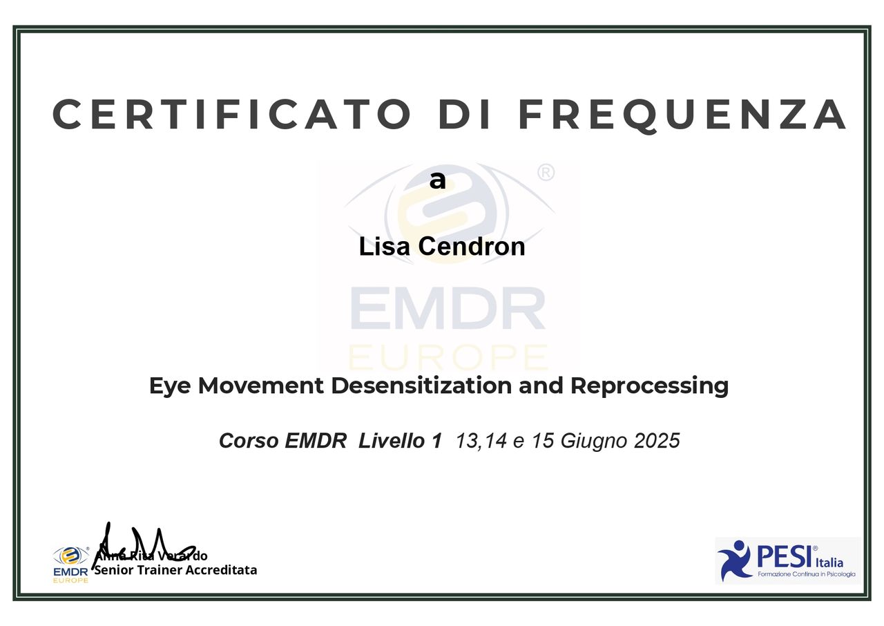 Ho trovato una professionista molto preparata che mi ha aiutato a tirare fuori le mie capacità di vedere le cose da un punto di vista differente. Mi ha fatto sentire molto accolta e, in poco tempo, ho potuto vedere grandi cambiamenti. Consigliata!