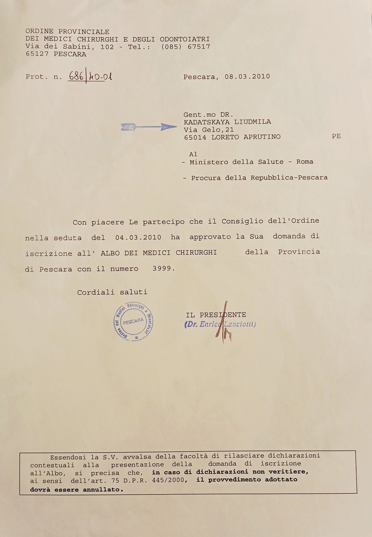 Pescara 1 indirizzo