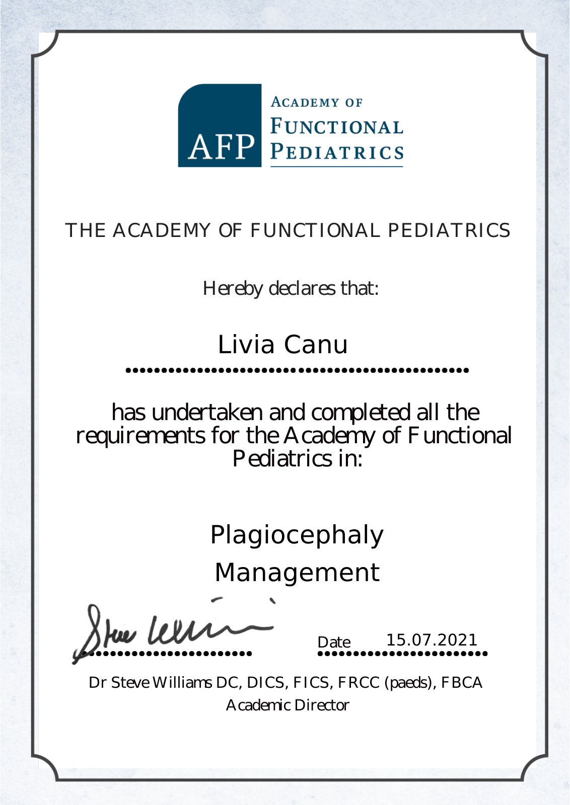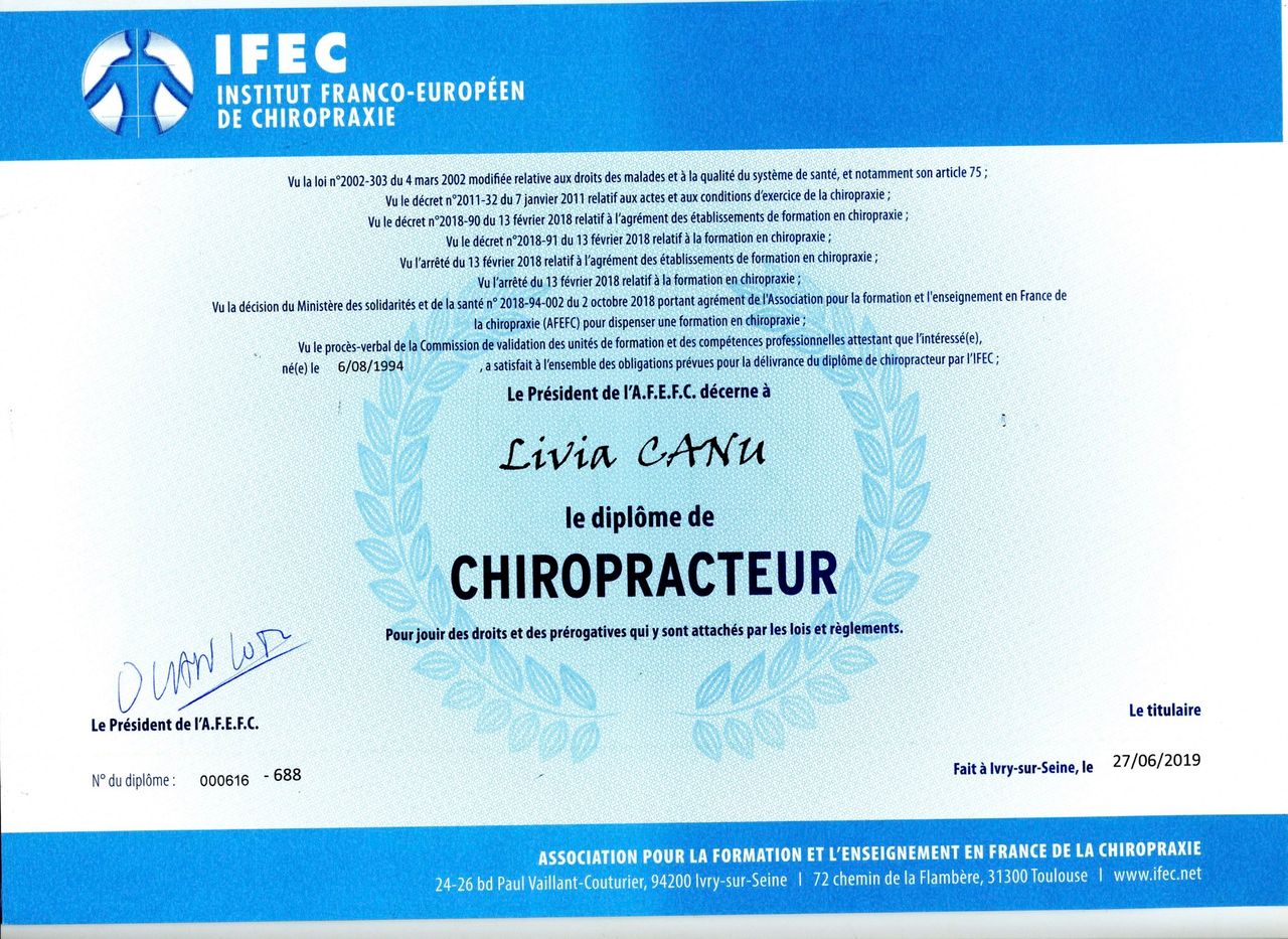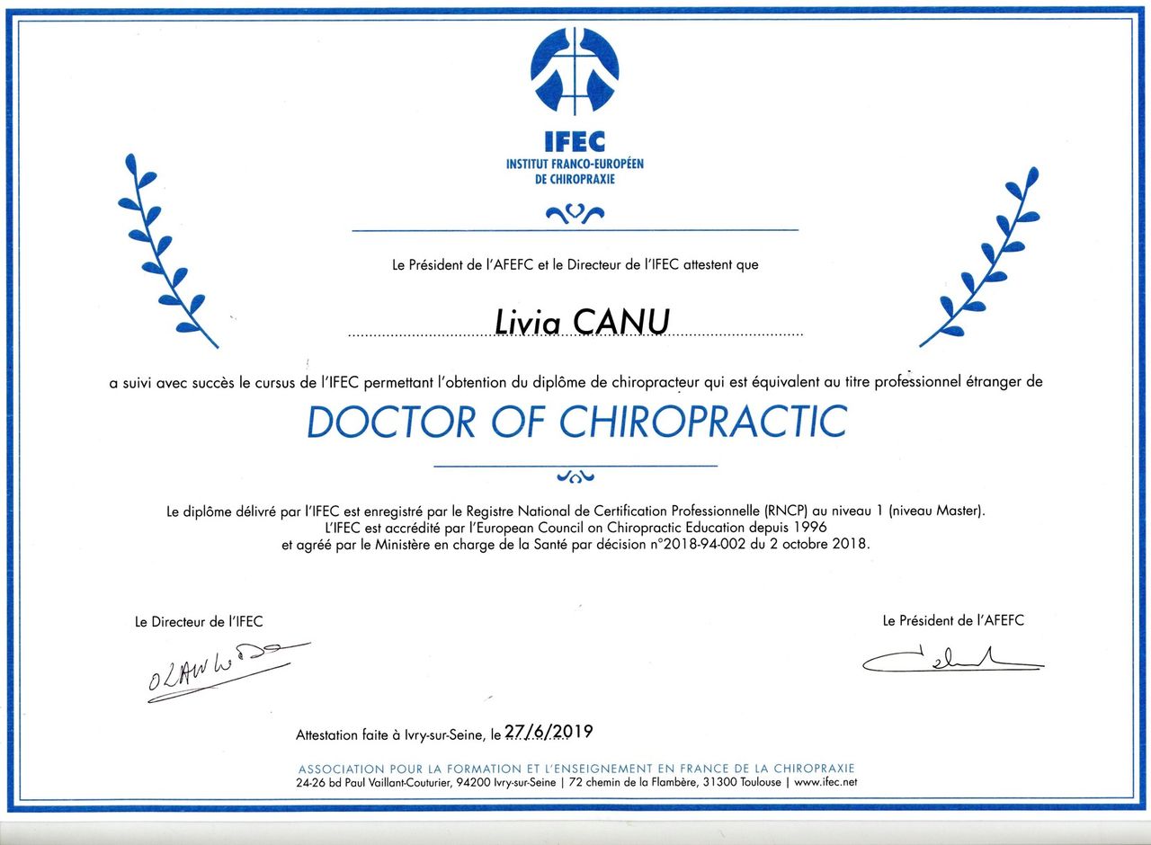 Sono una Dottoressa Chiropratica laureata all’IFEC di Parigi, dove ho completato un percorso di sei anni di studi.