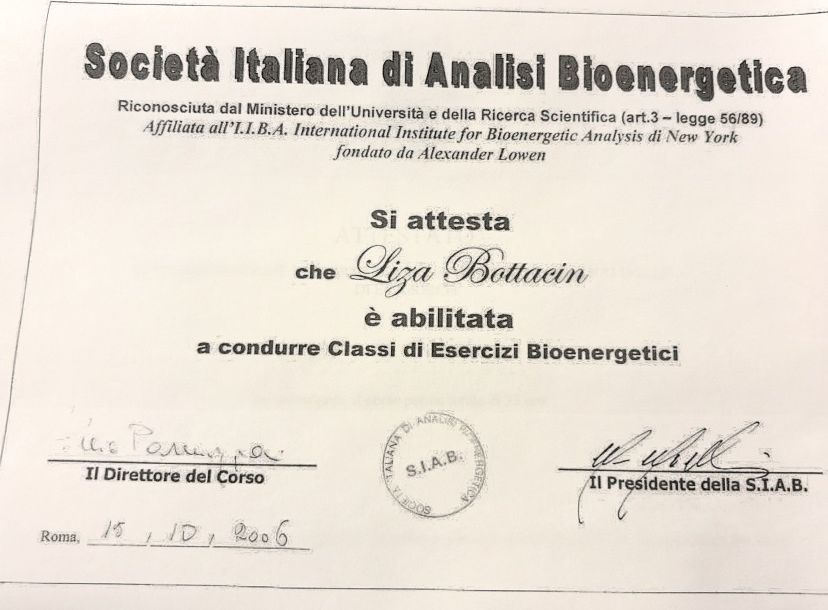 Sono una Psicoterapeuta e Psicologa clinica dell’Ordine degli Psicologi del Veneto, Formatrice, Supervisore e Expert Trainer in Counselling; Counsellor Professionista a mediazione corporea, Conduttrice Certificata di Classi di Bioenergetica, Operatrice Certificata di Massaggio dolce neonatale (Centro studi Eva Reich); Master di alta formazione in Clinica dei Disturbi della nutrizione e Alimentazione. Inoltre sono socia della Società Italiana di Analisi Bioenergetica fondata da Alexander Lowen, Socia dell'Istituto di Ricerca e Intervento per la salute, precedente Consigliere del Comitato Direttivo del Coordinamento Nazionale Counsellor Professionisti del Veneto e Friuli Venezia Giulia.