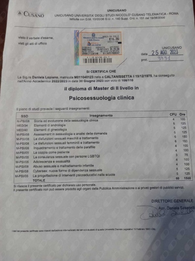 Daniela è una psicologa straordinaria! La sua empatia e comprensione sono state fondamentali per il percorso di crescita personale di mia figlia adolescente. Ascolta attentamente, offre consigli pratici e da sostegno emotivo. La sua professionalità e discrezione ti fanno sentire a tuo agio sin dalla prima seduta. La consiglio vivamente a chiunque stia cercando un supporto psicologico di alta qualità.