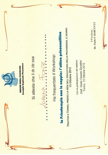 Oltre alla psicologia la sua formazione comprende anche la neuropsicologia, attraverso un percorso formativo (2006/2008) al Presidio Sanitario San Camillo di Torino, dove ha prestato servizio di tirocinio per due anni, apprendendo l'attività di counseling, diagnosi psicologica e neuropsicologica, il rilassamento muscolare Jacobson, training autogeno.
